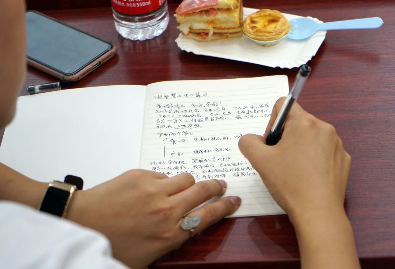 緊接著董事長陳偉其從管理的實踐之知識密碼、管理的實踐之企業理解模型、管理的實踐之湘能楚天三個方面進行了深入淺出的分享,并與成員組進行了面對面的交流、探討,成員組積極提出疑問,討論氣氛非常熱烈。